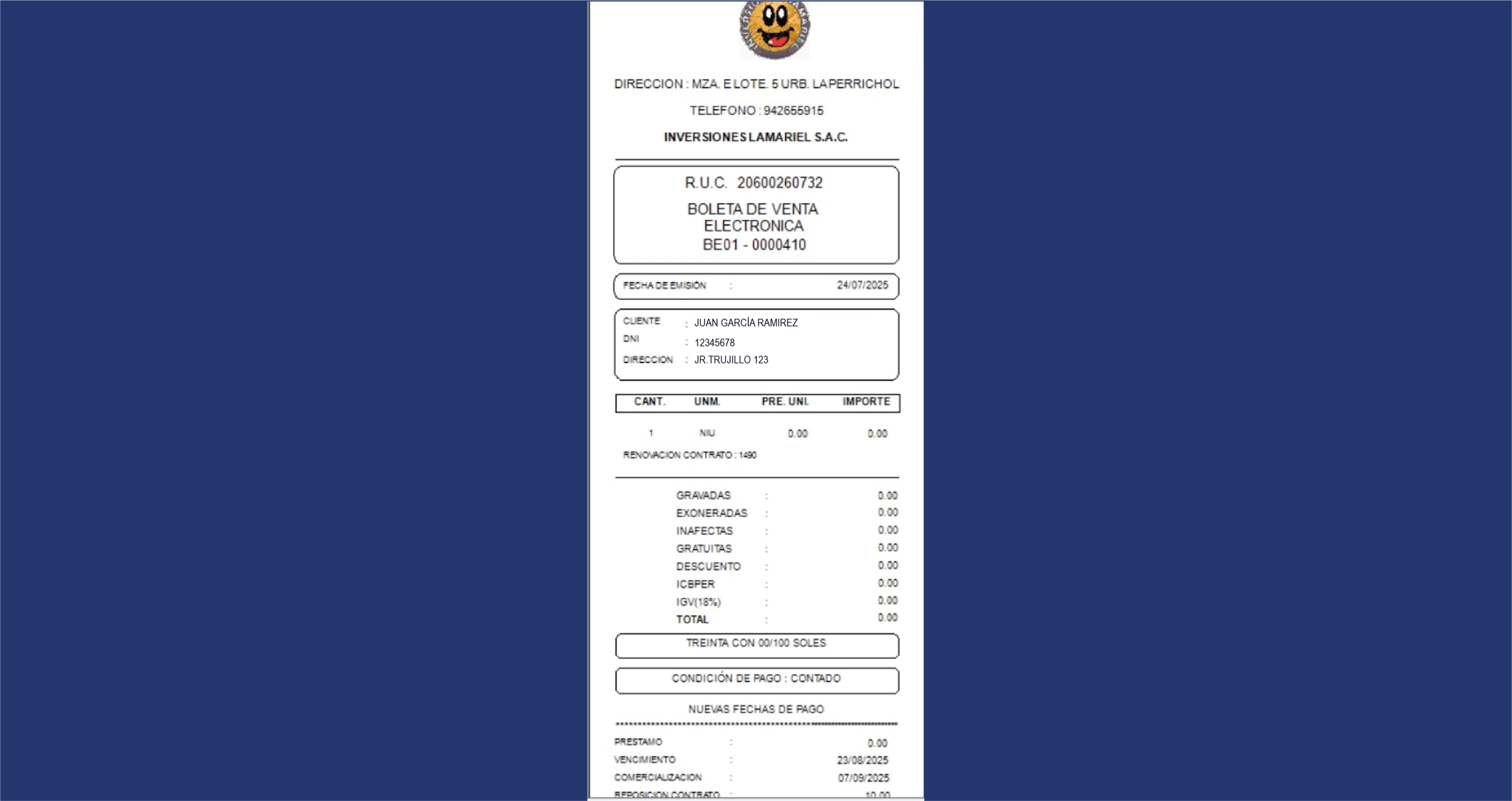 PRESTAPLUS de forma automática genera una factura electrónica por los ingresos o por algunos de ellos en específico y por las ventas efectuadas de su inventario en vitrina, desde el sistema se emite el archivo PDF y el XML.